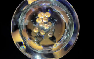 The Volvox installation is a metaphor for life in which the endless search for light is transposed using gold nanoparticles suspended in water. They fill glass capsules that are themselves caught in a dance that is both random and synchronized within a rotating transparent sphere. By changing the angle of observation in relation to the incidence of light, the public can experience the relativity of the notion of color, as the gold changes from blue to orange, passing through light purple, itself a complementary color to the green of the algae. This dichroism coloring effect is due to the dominant contribution of the localized surface plasmon resonance phenomenon in the nanoparticles, which affects both the absorption and scattering of light.