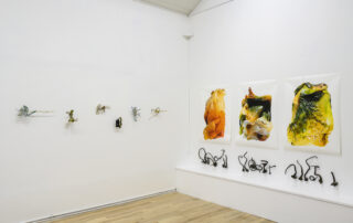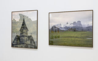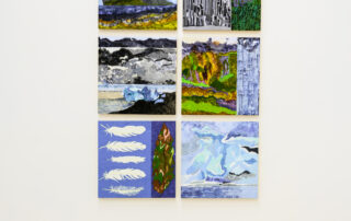 Verk mín byggjast á athugunum og hugviti og skrásetja minningar frá stöðum, þau stilla þekkjanlegum myndum upp við hlið hreinna abstraktmynda í sömu margþættu innsetningunni. Þessi röð verka undirstrikar náttúrulegt landslagið, með áherslu á hvernig vatn mótar ekki aðeins landið heldur einnig félagslega, efnahagslega og andlega upplifun okkar. Á Íslandi kynntist ég stað þar sem náttúran er í öndvegi á einhvern hátt sem virðist í senn lifandi og ævaforn, spennandi og skelfilegur kraftur. Tilfinning fyrir jarðfræðilegum tíma er innbyggð í landslagið. Snjórinn sem hefur pressast í ís gæti hafa fallið fyrir þúsund árum en á sama tíma gæti eldgos spýtt kviku upp úr jörðinni og gjörbreytt ásýnd landsins. Mín eigin skynjun á jörðinni hafði fram að því verið að hún væri einhvers konar hlutlaus fasti, en hér virkaði kraftur náttúrunnar eins og umsnúningur á tímanum, fortíð og nútíð runnu saman, stundaglasinu snúið við, og sláandi áminning um gagnkvæm tengsl.